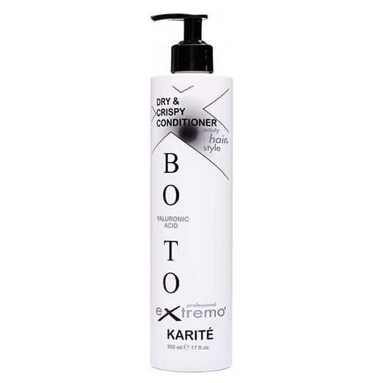 Το Extremo Botox Karite Dry and Crispy είναι μια επαγγελματική σειρά περιποίησης μαλλιών, σχεδιασμένη ειδικά για ξηρά, ταλαιπωρημένα και σγουρά μαλλιά. Με βασικά συστατικά το βούτυρο καριτέ (karite) και το υαλουρονικό οξύ, προσφέρει βαθιά ενυδάτωση, αναδόμηση, μειώνει το σπάσιμο της τρίχας και την ψαλίδα, αφήνοντας τα μαλλιά απαλά και λαμπερά, χωρίς parabens και θειικά άλατα.